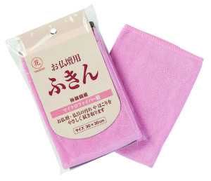 ピカール 仏壇クリーナー スプレーをマイクロファイバークロスのような傷がつかない布に吹きかけてから仏壇を拭きつやを出します。